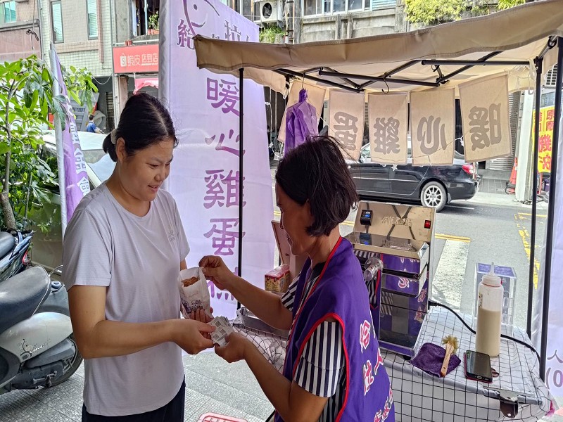 活動當天由人安基金會輔導的單親媽媽現場烤製雞蛋糕,從受助者轉為付出者,回饋給響應公益的民眾。現場只要捐出發票18張,即可換取香甜的雞蛋糕,不僅品嚐溫暖滋味,更能實際支持單親媽媽的自立創業。