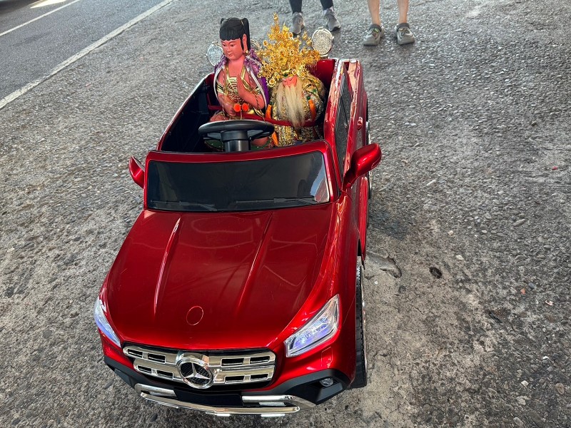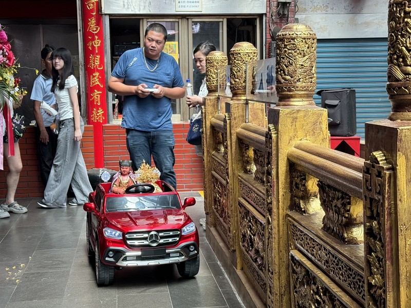 神明走在時代尖潮、蓮花太子開賓士載土地公出遊、吸引民眾圍觀