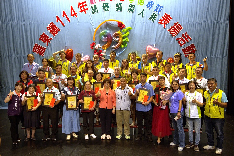 績優調解人員及機關:20位,協助羅東鎮公所調解委員會,透過專業與時間,為社會紛爭提供解決之道,促進社會和諧。