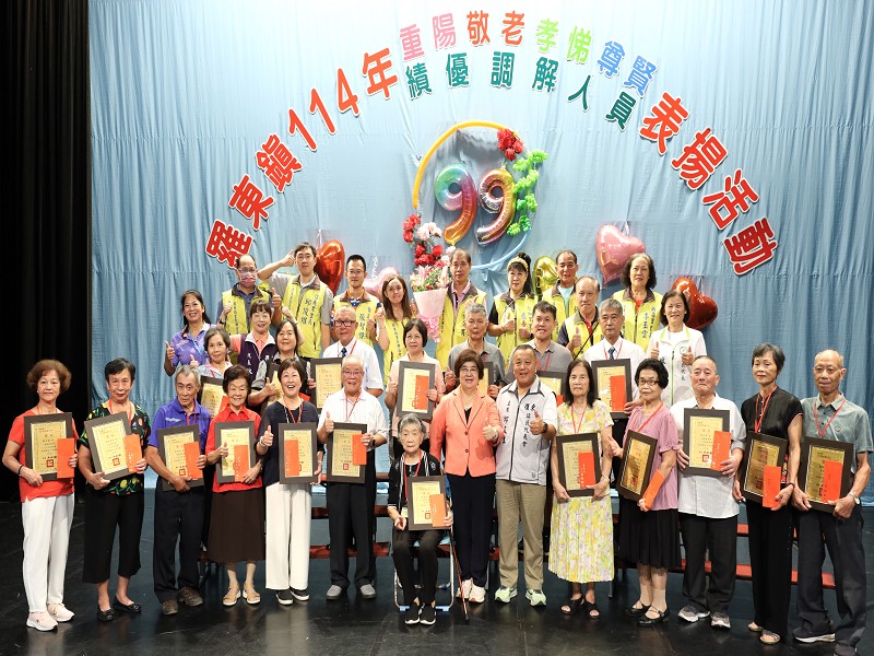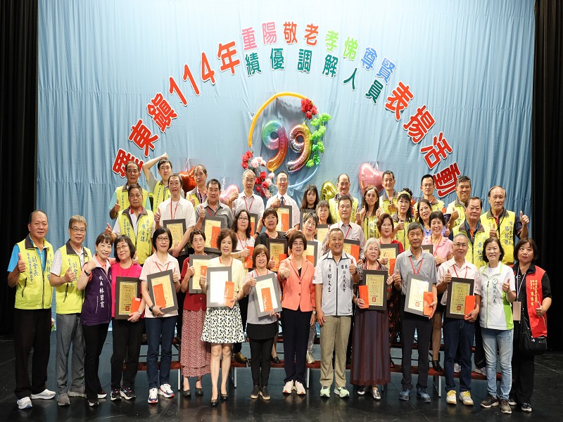 為弘揚敬老崇孝的傳統美德,羅東鎮公所10月18日上午,假羅東鎮展演廳盛大舉辦「114年【重陽敬老‧孝悌尊賢】暨【績優調解人員】【績優里鄰長、民政人員】表揚活動」。鎮長吳秋齡親自頒獎,表揚包含長青楷模、敬老楷模、孝行楷模在內,共計94位對社會有卓越貢獻的楷模,藉此凝聚社會溫馨祥和的力量。
