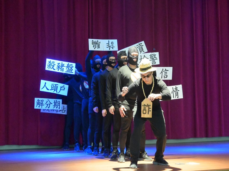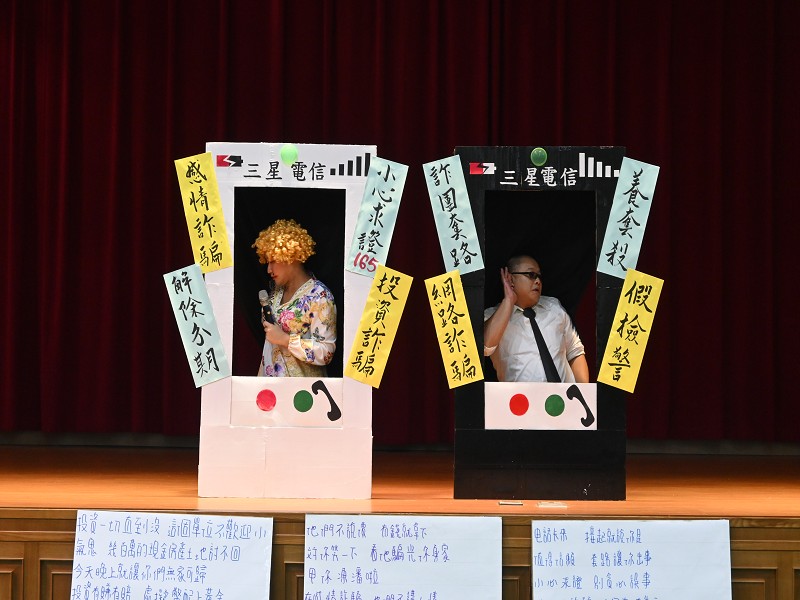 各隊伍透過戲劇張力與生活化的情境模擬,生動呈現常見的詐騙手法,包括「假投資」、「假親友」、「假網購」及「網路交友詐騙」等,讓反詐騙觀念在歡笑與掌聲中自然傳遞,成功達成寓教於樂的宣導效果。
