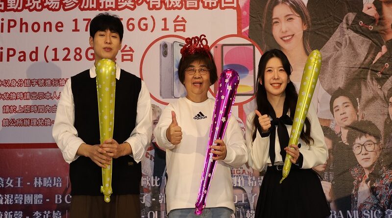 吳秋齡鎮長(中)偕同韓國藝人等歡迎大家來羅東跨年。