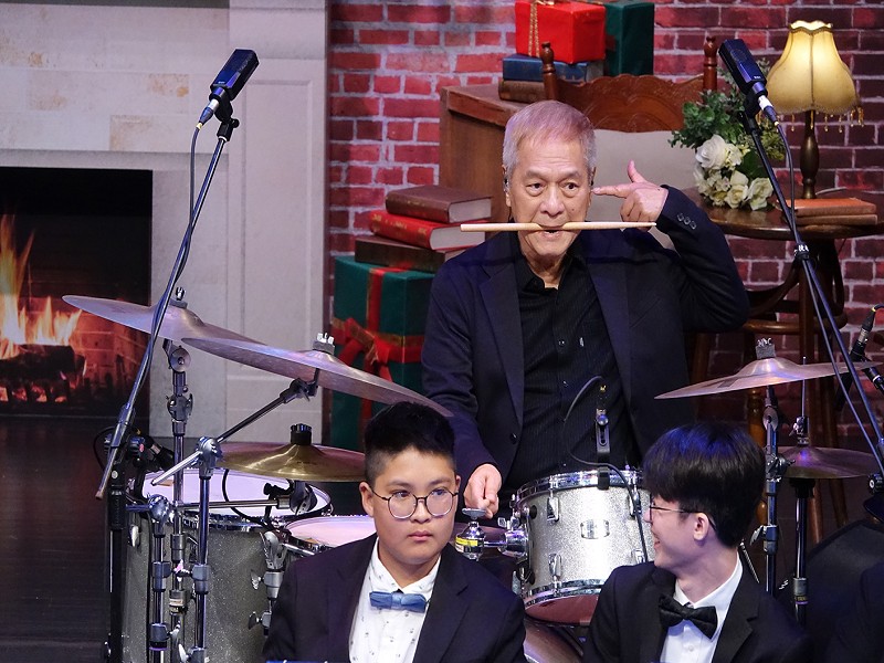 高齡77歲的鼓王黃瑞豐,台上依然玩心十足。