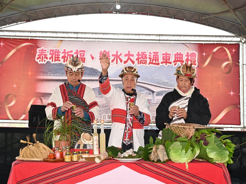 大同鄉泰雅族耆老為樂水大橋通車啟用祈福。