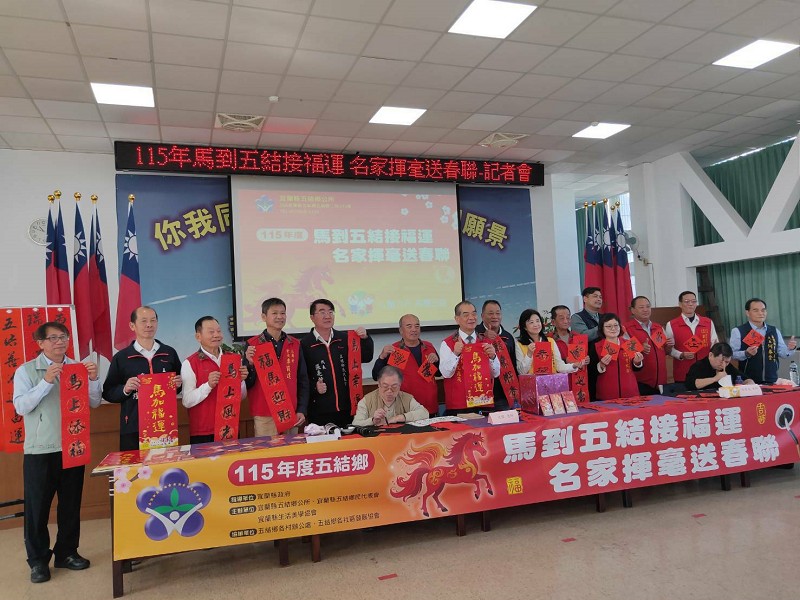 迎接農曆馬年到來,五結鄉公所攜手宜蘭縣生活美學協會,將於 115年2月7日(星期六)上午9時,在 五結鄉公所三樓禮堂 舉辦「馬到五結接福運 名家揮毫送春聯」活動,邀請6位書法名家現場揮毫,免費贈送 350份手寫春聯,與鄉親一同迎春納福、感受年節溫度。