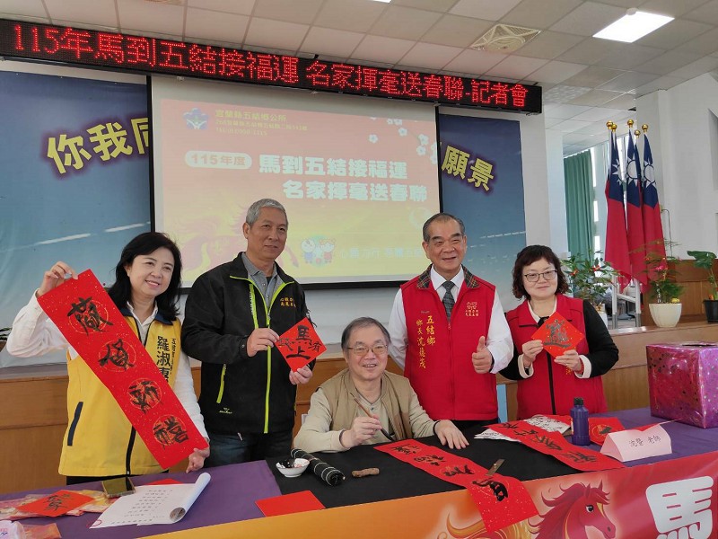 五結鄉長沈德茂表示,農曆春節是臺灣最重要的傳統節慶,象徵團圓與嶄新開始。鄉公所多年來持續與生活美學協會及書法名家合作辦理揮毫送春聯活動,深獲鄉親肯定。今年適逢馬年,期盼透過書法藝術傳遞「馬到成功、龍騰馬躍」的祝福,為鄉親的新一年注入正向能量。
