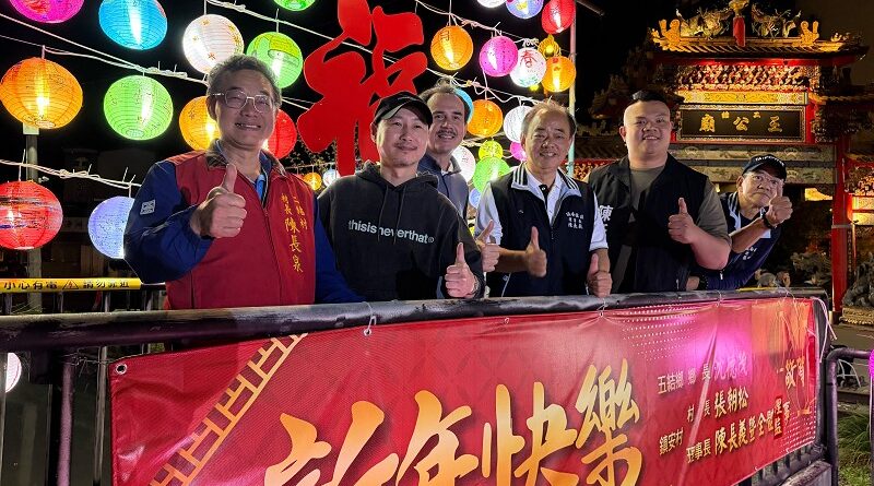 鎮安社區發展協會陳長義理事長( 右三)等歡迎鄉親春節期間來賞燈。