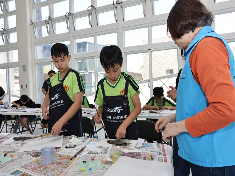 南安國小率先體驗「魚拓DIY」。